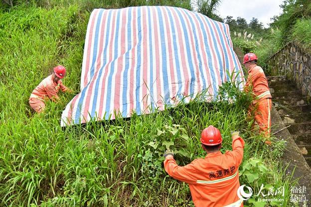 工作人員對(duì)高速兩側(cè)植被進(jìn)行加固