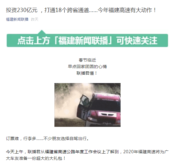 今天上午,聯(lián)播君從福建省高速公路年度工作會議上了解到,2020年福建高速將為廣大車友準(zhǔn)備一份超大的大禮包!