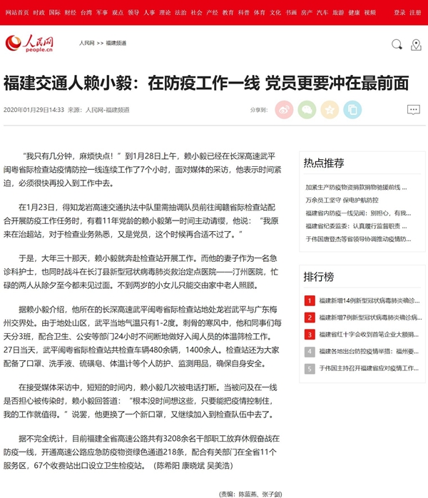 福建交通人賴小毅:在防疫工作一線 黨員更要沖在最前面