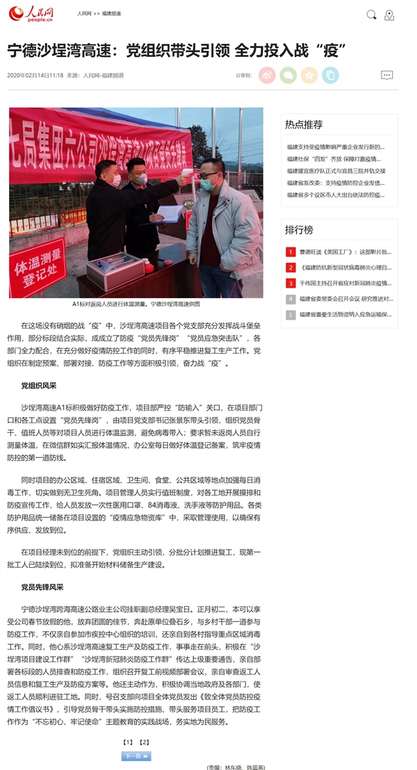 人民網(wǎng)|寧德沙埕灣高速:黨組織帶頭引領(lǐng) 全力投入戰(zhàn)“疫”