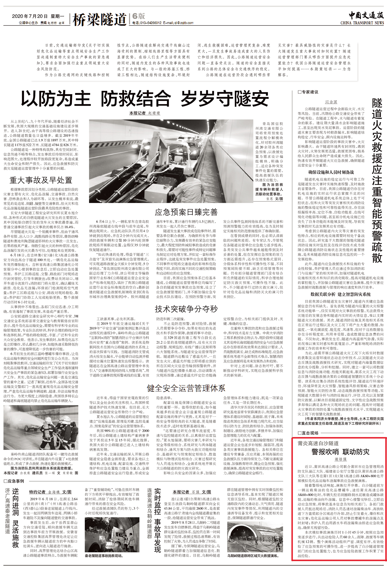 本次模擬事故演練歷時(shí)1小時(shí)45分鐘,按照應(yīng)急預(yù)案逐步進(jìn)行,共出動(dòng)搶險(xiǎn)人員60余人,清障、救援等車輛機(jī)械12輛。整個(gè)演練活動(dòng)組織嚴(yán)密、調(diào)度有序,有效檢驗(yàn)了應(yīng)急預(yù)案的可操作性,進(jìn)一步提高了白沙隧道管理部門的應(yīng)急處置能力,也為應(yīng)急搶險(xiǎn)救援工作積累了實(shí)戰(zhàn)經(jīng)驗(yàn)。(中國(guó)交通報(bào))