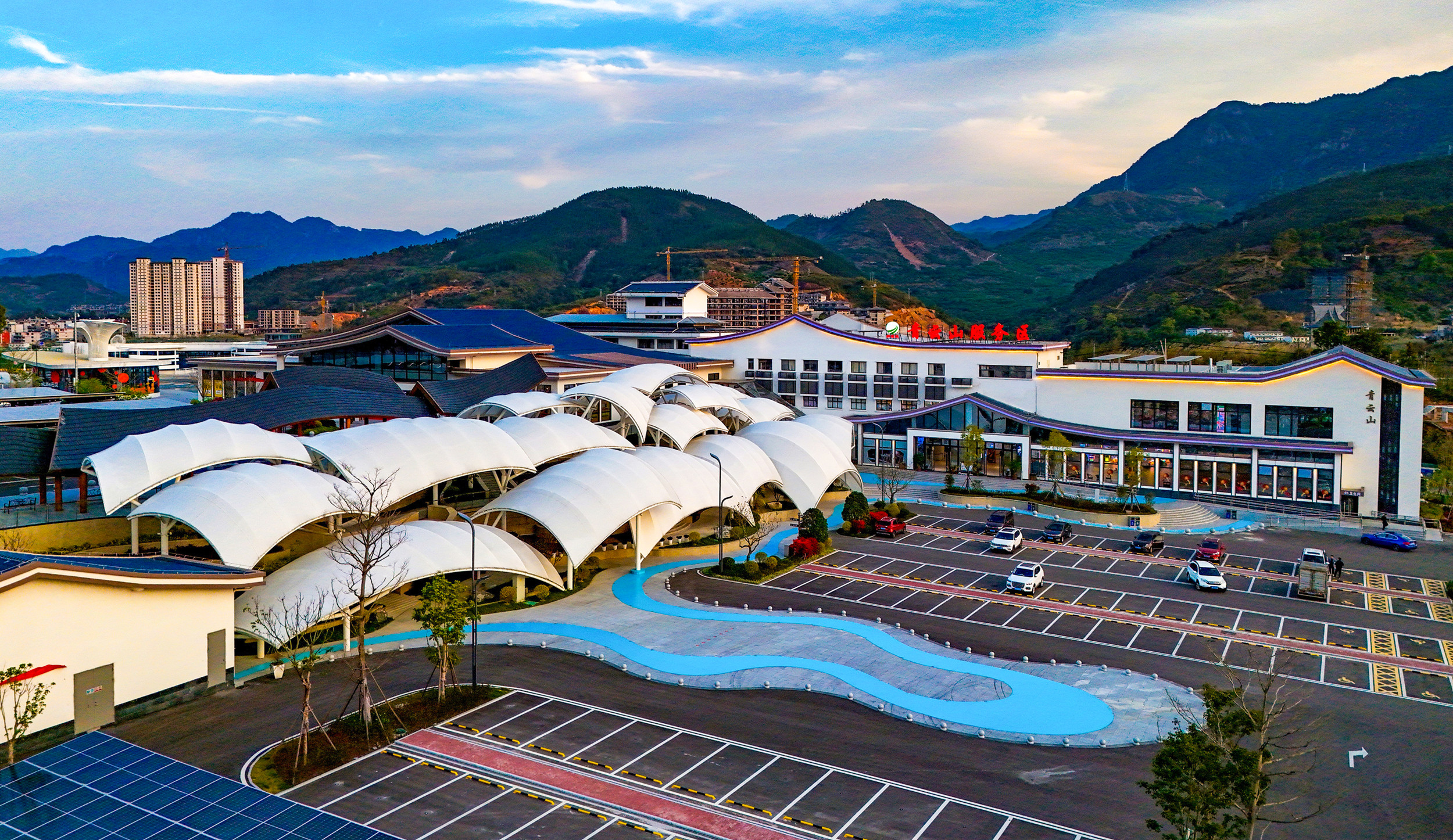 青云山服務(wù)區(qū)于2014年8月開(kāi)通運(yùn)營(yíng),2022年9月提升改造,2023年11月18日正式開(kāi)放試營(yíng)業(yè),目前占地面積137畝,其中綜合樓內(nèi)面積7100平方米、外場(chǎng)水云間景觀1682平方米、飛檐連廊387平方米、青云直上服務(wù)中心154平方米、濱水餐廳423平方米、觀水池1079.975平方米、自助燒烤區(qū)910平方米、綠化面積25433平方米,光伏停車(chē)棚建設(shè)3500平方米、屋面平臺(tái)建設(shè)530平方米。上下區(qū)停車(chē)位增加至359個(gè),公共衛(wèi)生間總廁位增至80個(gè)。日均主線斷面車(chē)流約2萬(wàn)輛,日均入?yún)^(qū)車(chē)流量約2600輛。