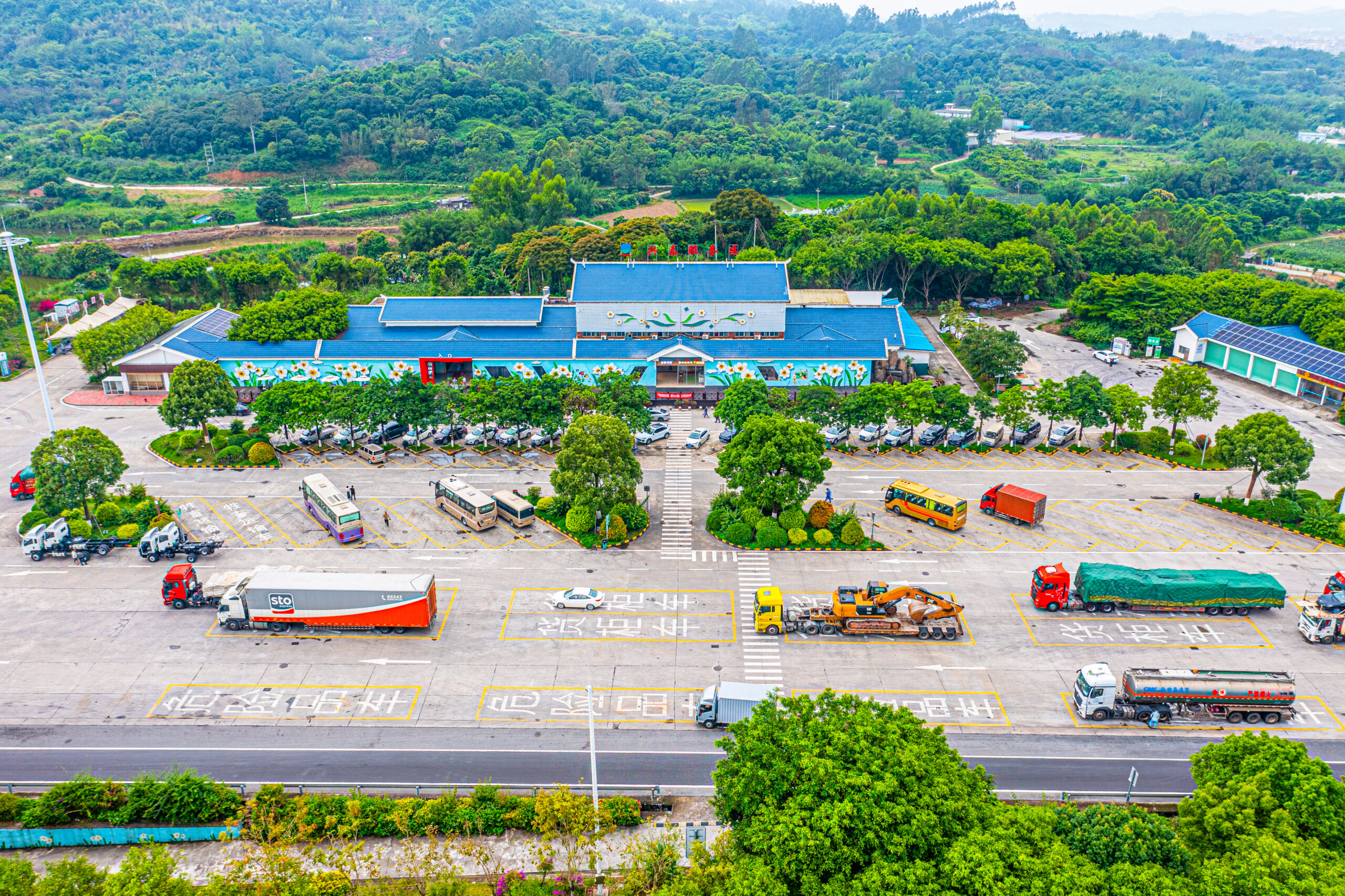 興泰服務(wù)區(qū)坐落于長泰縣陳巷鎮(zhèn)夫坊村,地處廈蓉高速公路K32+250米處,毗鄰“福建第一漂”長泰漂流與風景秀麗的長泰天柱山景區(qū)。服務(wù)區(qū)以“服務(wù)區(qū)+旅游”理念為指導,以“花開高速”主題,結(jié)合漳州市市花水仙花,設(shè)計以水仙花為主題的彩繪和漳州著名旅游景點的微縮景觀,突顯漳州“花果之鄉(xiāng)”特色文化品牌,為廣大旅客提供溫馨便捷的休息環(huán)境,成為旅客理想的旅游休閑驛站。