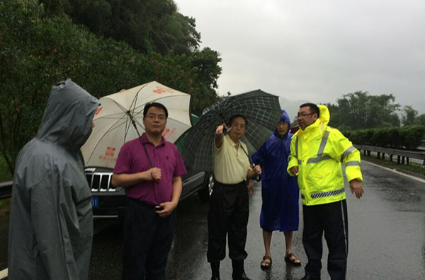 今年第13號(hào)臺(tái)風(fēng)“蘇迪羅”正面襲擊我省,對(duì)我省閩東地區(qū)造成較大影響。8月9日,黃祥談董事長、潘向陽副總經(jīng)理冒雨帶隊(duì)前往查看受災(zāi)情況,指導(dǎo)防汛抗臺(tái)工作,并親切看望慰問抗臺(tái)一線干部員工。黃祥談董事長一行檢查了羅寧高速飛鸞嶺隧道受損的配電房,現(xiàn)場(chǎng)指揮調(diào)度溜方段的應(yīng)急處置,并在寧德管理公司召開防汛抗臺(tái)現(xiàn)場(chǎng)會(huì)。