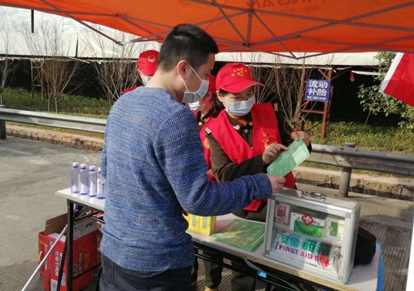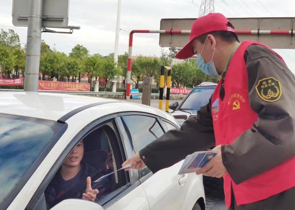 泉州公司向過往車輛發(fā)放“疫情防抗”手冊。