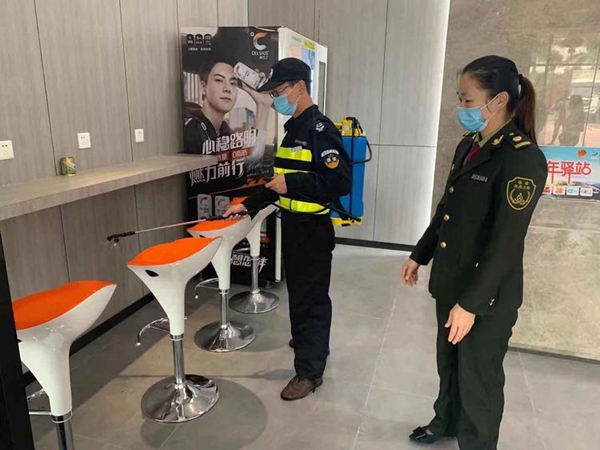 福泉公司青口服務(wù)區(qū)對公共區(qū)域、公共設(shè)施等進(jìn)行清潔和消毒;每日定點(diǎn)時段進(jìn)行體溫測量并對全區(qū)工作人員發(fā)放口罩。