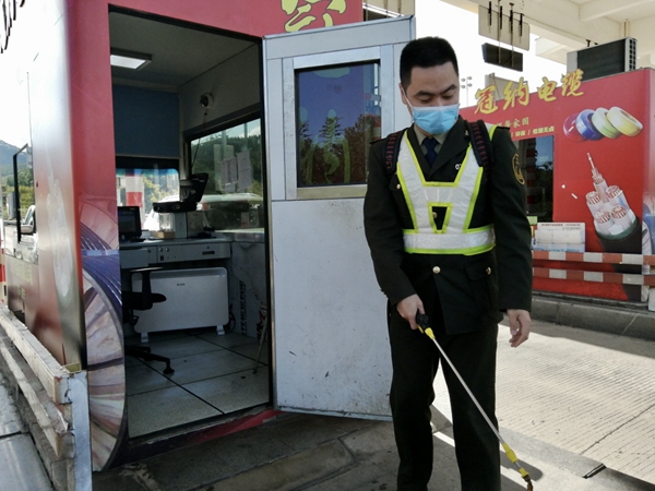 漳州公司平和片區(qū)采用84消毒液對車流、人流較大的場所如收費(fèi)票亭、收費(fèi)車道、辦公樓、食堂等關(guān)鍵場所進(jìn)行全面消毒處理。
