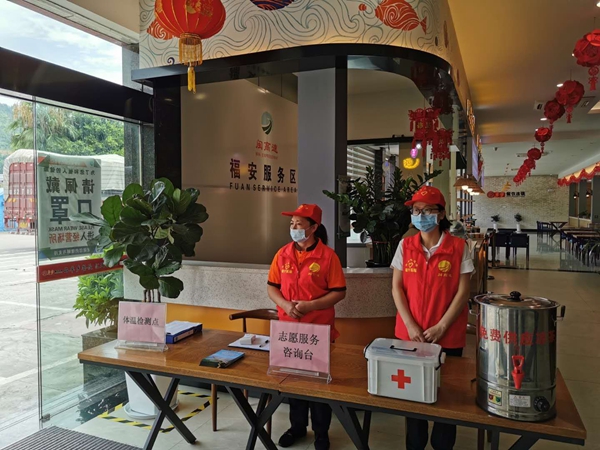 在興泰服務(wù)區(qū),青年志愿者積極踐行“待司乘如親人”的理念,依托高速公路“青年驛站”提供暖心志愿服務(wù),志愿者主動(dòng)靠前,開展體溫檢測(cè),強(qiáng)化疫情防控舉措;為過(guò)往司乘人員遞送茶水,發(fā)放安全行車宣傳單,提供旅游咨詢,發(fā)揮疏導(dǎo)、保暢、服務(wù)等作用,以有溫度的服務(wù),提升服務(wù)區(qū)的社會(huì)影響力。